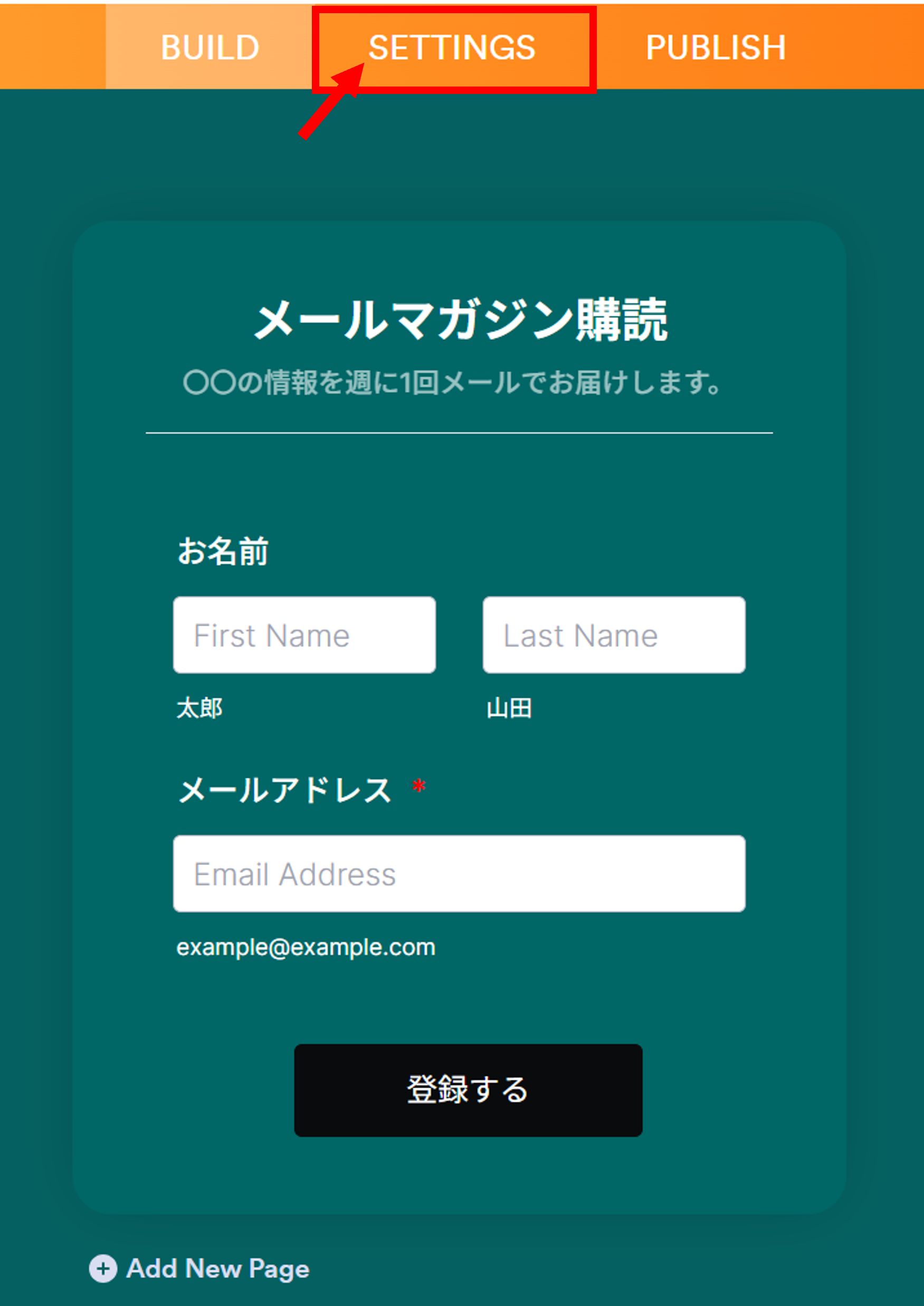 フォームが完成したら、SETTINGSタブでその他の設定をします。