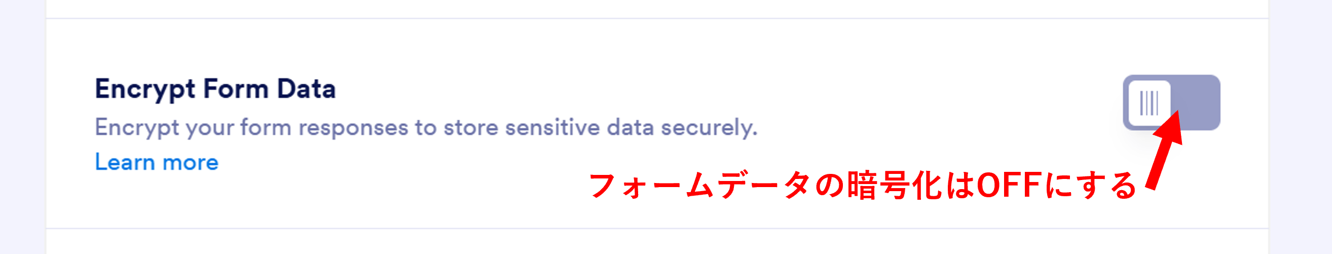 なお、同メニューの「Encrypt Form Data(フォームデータの暗号化)」は必ずOFFにしてください。ONにするとZapierとのデータ連携がうまくできません。