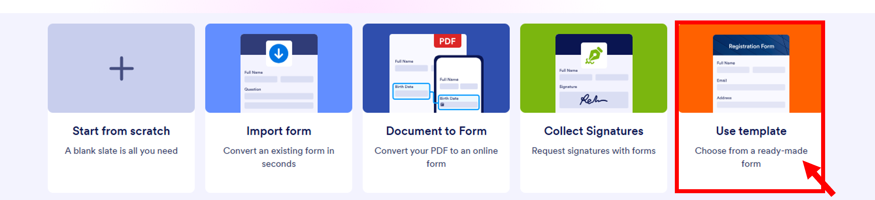 今回はテンプレートを使用してフォームを作成するため、「Use template」を選択しましょう。