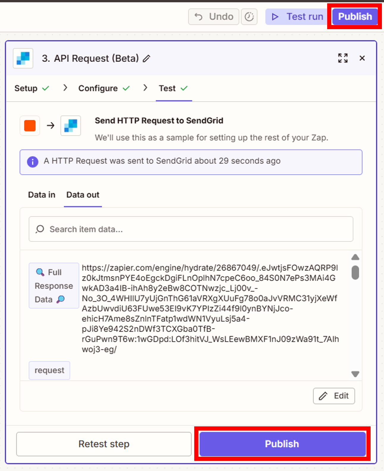 挙動確認ができたら、Zapierのダッシュボードで「Publish」ボタンをクリックします。