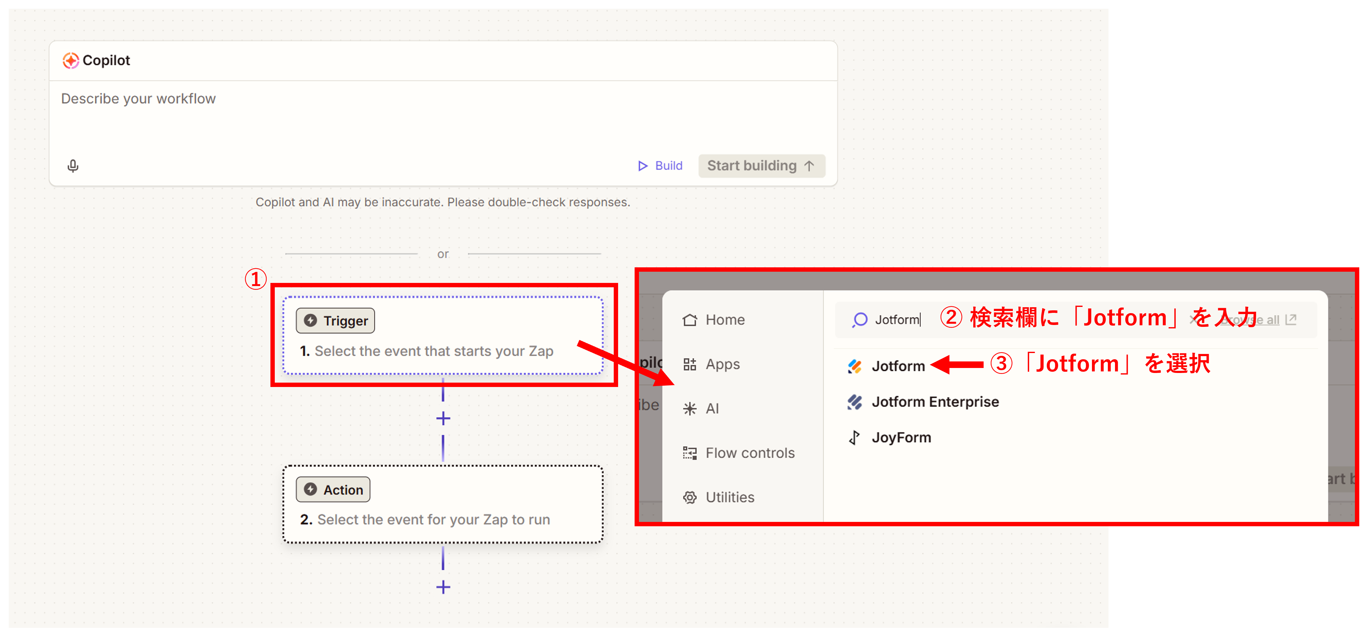 アプリ一覧(Apps)から「Jotform」を選択してください。